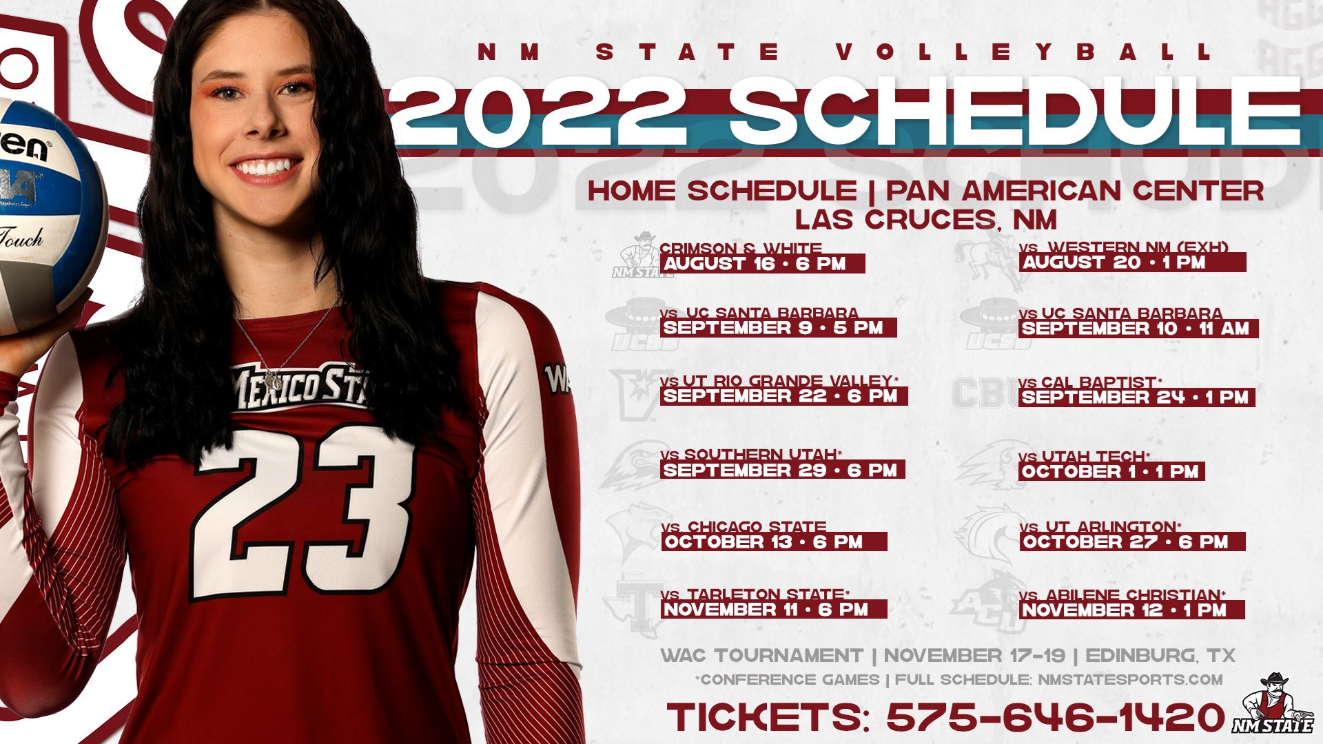 The first week of league play will come with a home match against UT Rio Grande Valley on Thursday, Sept. 22, before taking on California Baptist on Saturday, Sept. 24. The homestand will then continue as NM State lines up against a pair of Utah-based schools. WAC newcomer Southern Utah makes the voyage to Las Cruces on Thursday, Sept. 29, while Utah Tech comes to town two days later.
